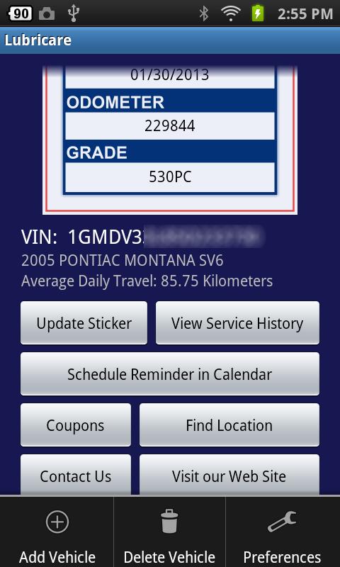 The eSticker app also lets you view a history of all services performed on your vehicles by Lubricare at any time, so you'll always know which services have been performed on each of your vehicles, and when they were last performed.