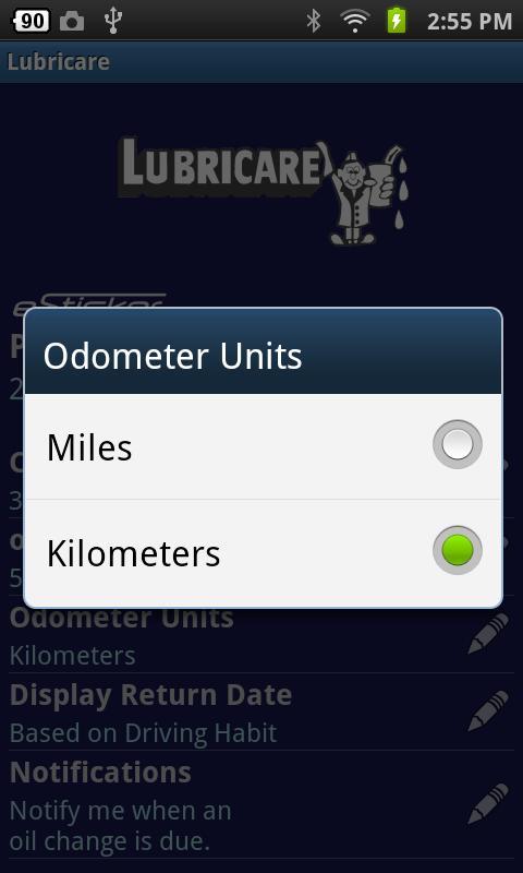 Other features include the ability to schedule a reminder on your calendar based on your vehicle's eSticker date and call up a map to find your nearest Lubricare location.