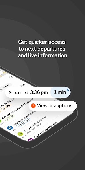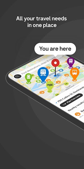 - Search: Look for destinations, stops, routes and myki outlets, or use your current location to search for nearby transport options.