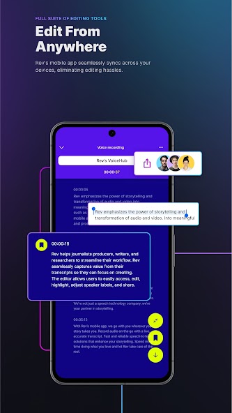 With over 1 million downloads, Rev is trusted by the largest brands and voices in media, market research, education and more. Our user-friendly interface makes it easy to record, transcribe, and edit your audio files, all from the palm of your hand.