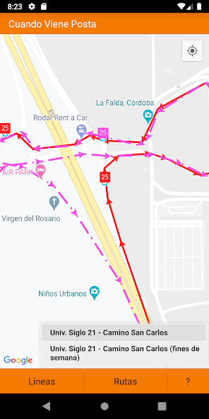 Cuando Viene Posta it allows you to know in real time the arrival schedule, at each of its stops, of the urban groups belonging to the 1, 2, 3, 4, 5, 6, 7, 8, 8, as well as of lines 600, 601, trolleybuses and aerobus of the city of Córdoba, Argentina.