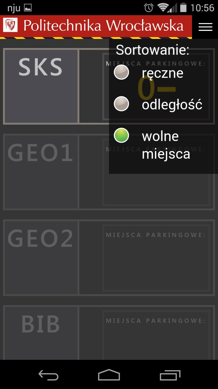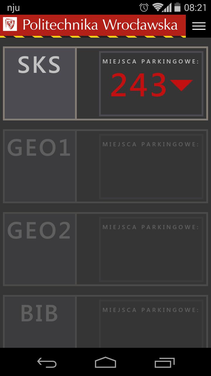 The application displays information about free places in the parking lots of the Wrocław University of Technology and about the trend of changes in free places.