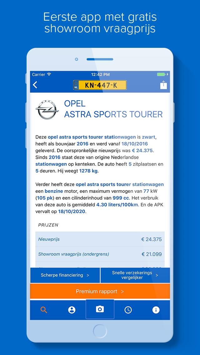 Simply take a picture of the license plate or fill this in manually and receive the most important information about the car for FREE!