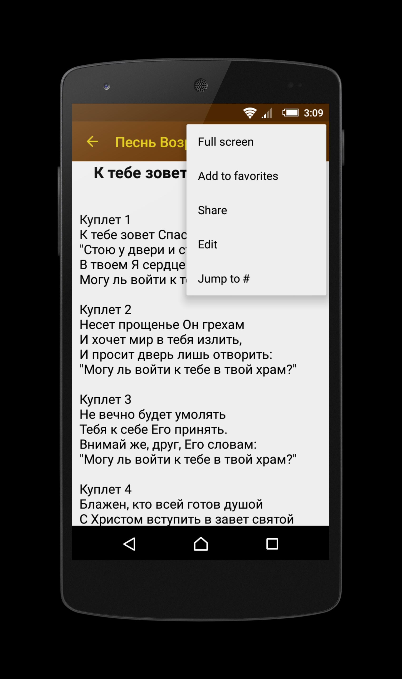 Golden Harp includes four popular Russian / Ukrainian songbooks are already included in the app: "Песнь Возрождения 3300", "Псалмоспіви", "Євангельські Пісні", and "Пісні Спасенних". App features include: