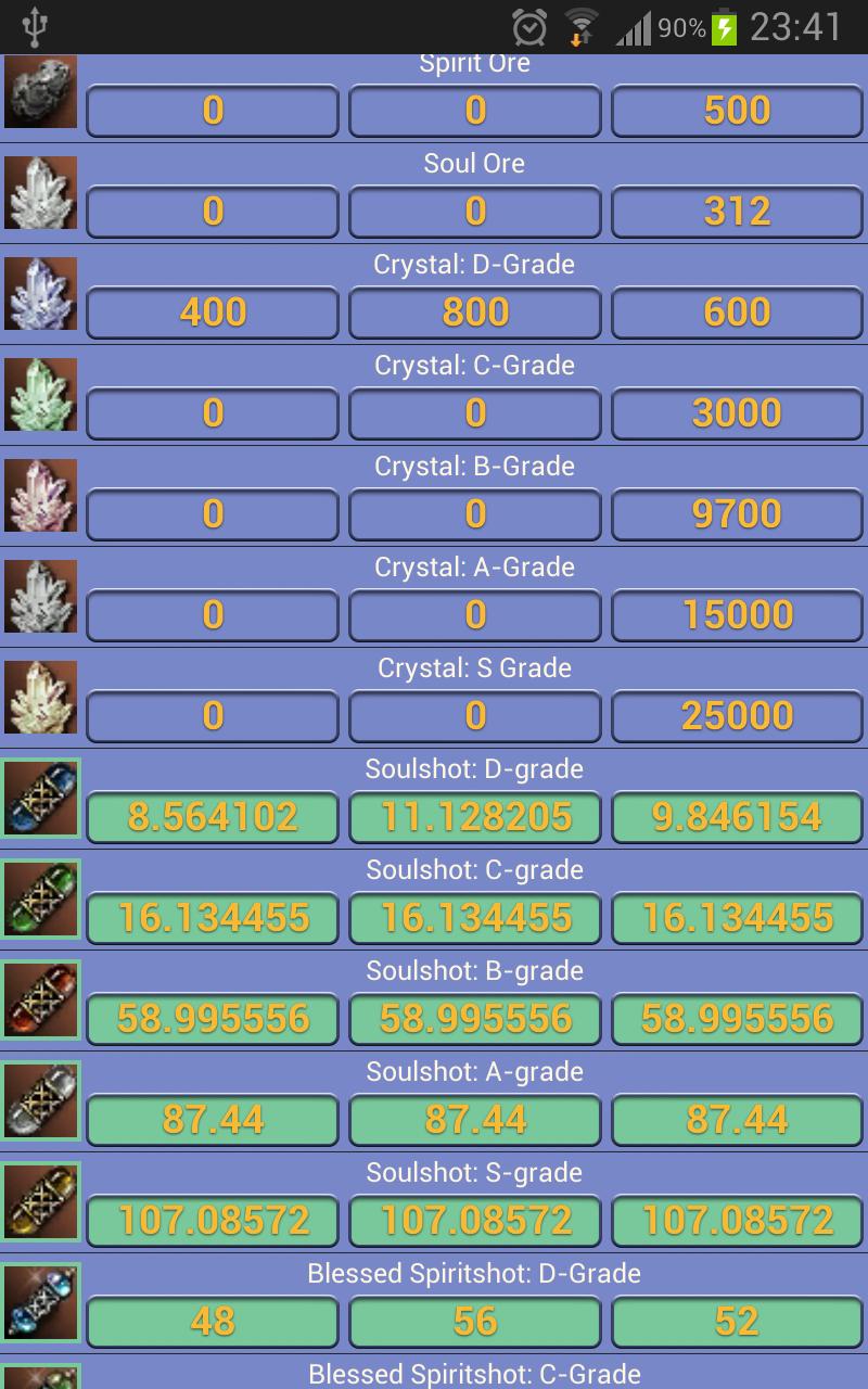 Calculator of resource prices to help all gnomes (hucksters, crafters) of the game Lineage 2.