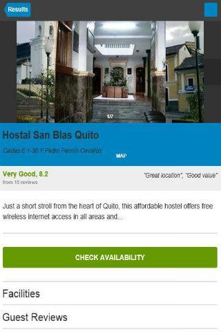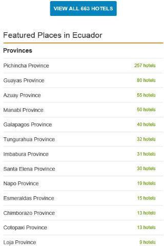One search and our app will search all the listed hotels and give you the best prices in one screen for all the deals. Hostel and motel listing is also in our app. Book your room now! Enjoy Ecuador!