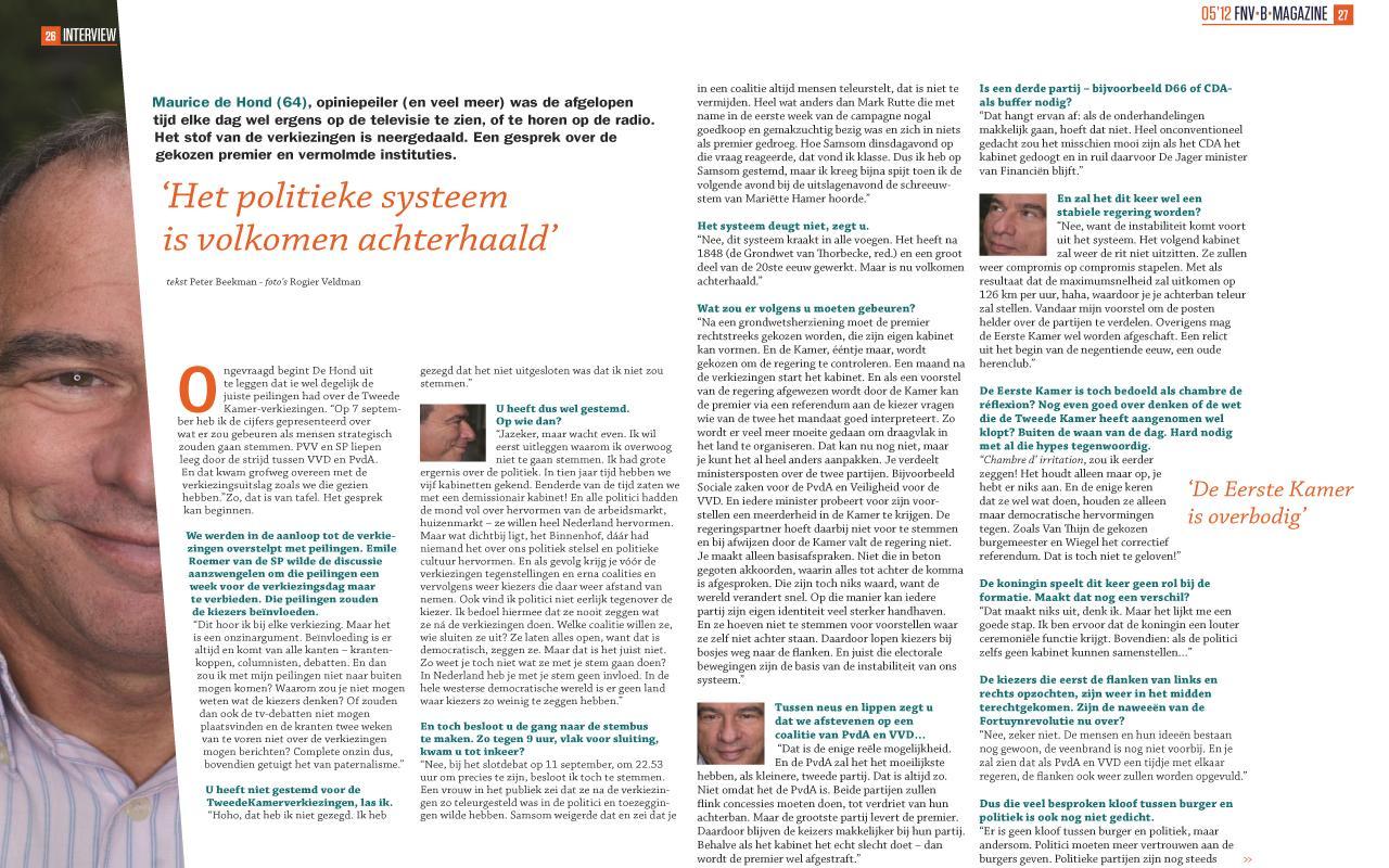 FNV B Magazine is a practical and informative journal about work, income and society. FNV B Magazine gives practical tips on, for example, applying or the combination between work and private life. In addition, trends are explained, such as around dismissal law and market forces. Personal experiences of people are also discussed. Finally, attention is paid to products, services, activities and views of FNV Bondgenoten. FNV B Magazine is a pleasantly readable and useful magazine.