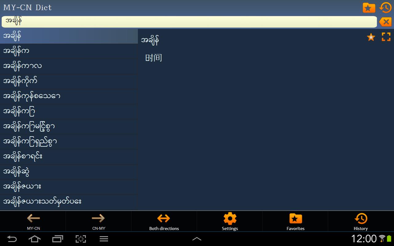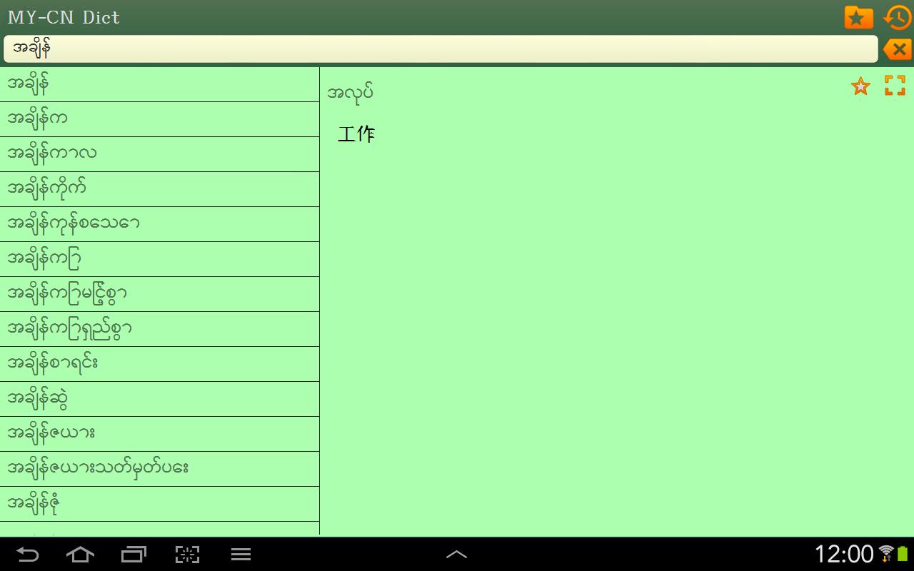 This is Myanmar (Burmese) - Chinese Simplified and Chinese Simplified - Myanmar (Burmese) dictionary; မြန်မာဘာသာ - တရုတ် (အလွယ်) နှင့် တရုတ် (အလွယ်) - မြန်မာဘာသာ အဘိဓါန် / 缅甸语 - 中文(简体) 以及 中文(简体) - 缅甸语 字典. The Application works OFFLINE and does not need the internet connection.