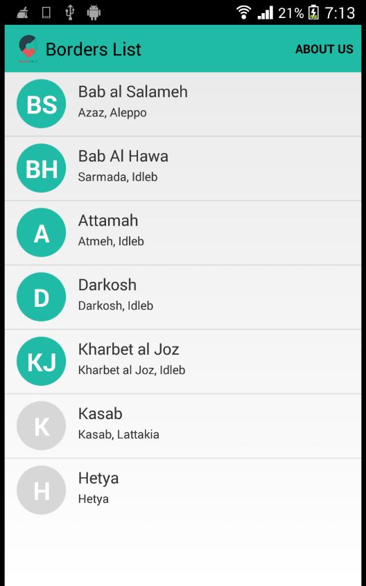 Data is provided on the operators of the crossing, the ease of access for particular groups, and the roads available after the crossing. Specifics on the operators of the crossing include the organization (Free Syrian Army, Islamic State of Iraq and al-Sham, Turkish Officials, Regime, etc.) and which groups they are targeting for inspection. Ease of access is broken down for civilians and humanitarian aid groups discussing the extent of inspections, monitoring, and likelihood of successful crossing. Specific data on times of operation and other useful information is provided intermittently. The app is updated frequently via the web for worldwide access to detailed and concise border reports from multiple contacts in Syria.