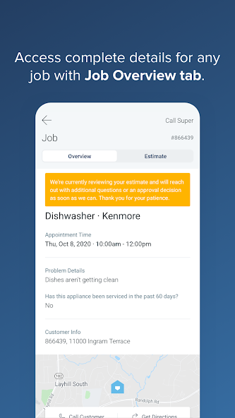 Super Pros use this app for the full workflow of a service call, from dispatch to resolution: