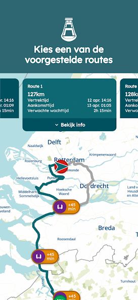 RiverGuide supports you as an inland skipper in planning the trip. During the trip, RiverGuide provides all relevant information that you will encounter along the way. Whether you are looking for the detailed information of bridges or locks, vertical clearances, operating times, VHF channel or telephone number, it is always at the top of your screen. The relevant notices to skippers are shown on both the map and your voyage planning. You will never be surprised again. Tide information is integrated at various points of your route.