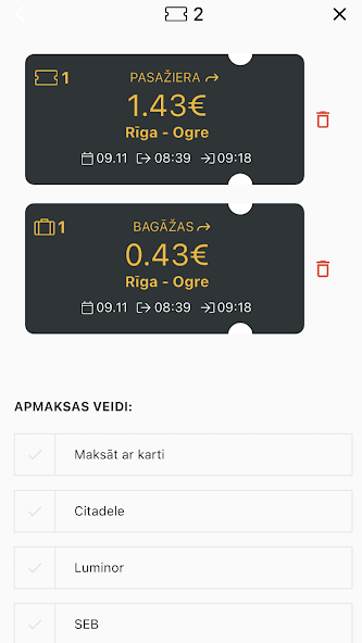 Current information about train traffic in Latvia. In the app, you can view the schedule of trains, view and select train routes, create a personal account, buy e-tickets, view train movements in real time, find out operational changes in train movement, apply to receive changes and news, familiarize yourself with the regulations for passengers, get information about the company's operations and current events. The mobile app automatically updates the train timetable and other information when there is an internet connection.