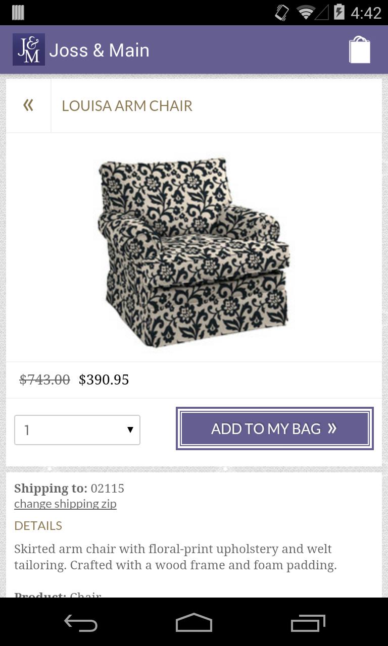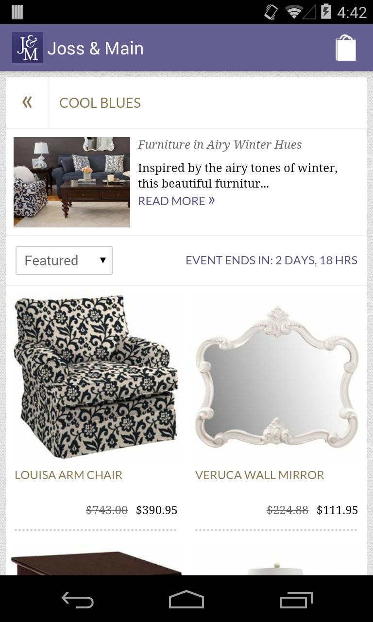 The Joss & Main app for Android offers convenient, free access to inspired home decor at exclusive prices.