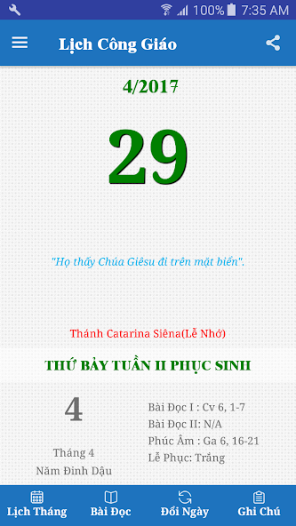 - After the first update, the application of Catholic calendar can be used offline