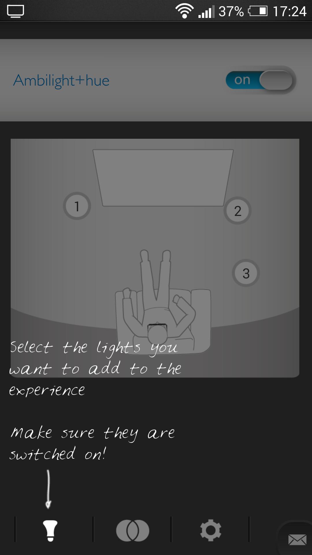 After connecting to your Ambilight TV and hue light bulbs, it will extend the Ambilight colors to your selected hue light bulbs.