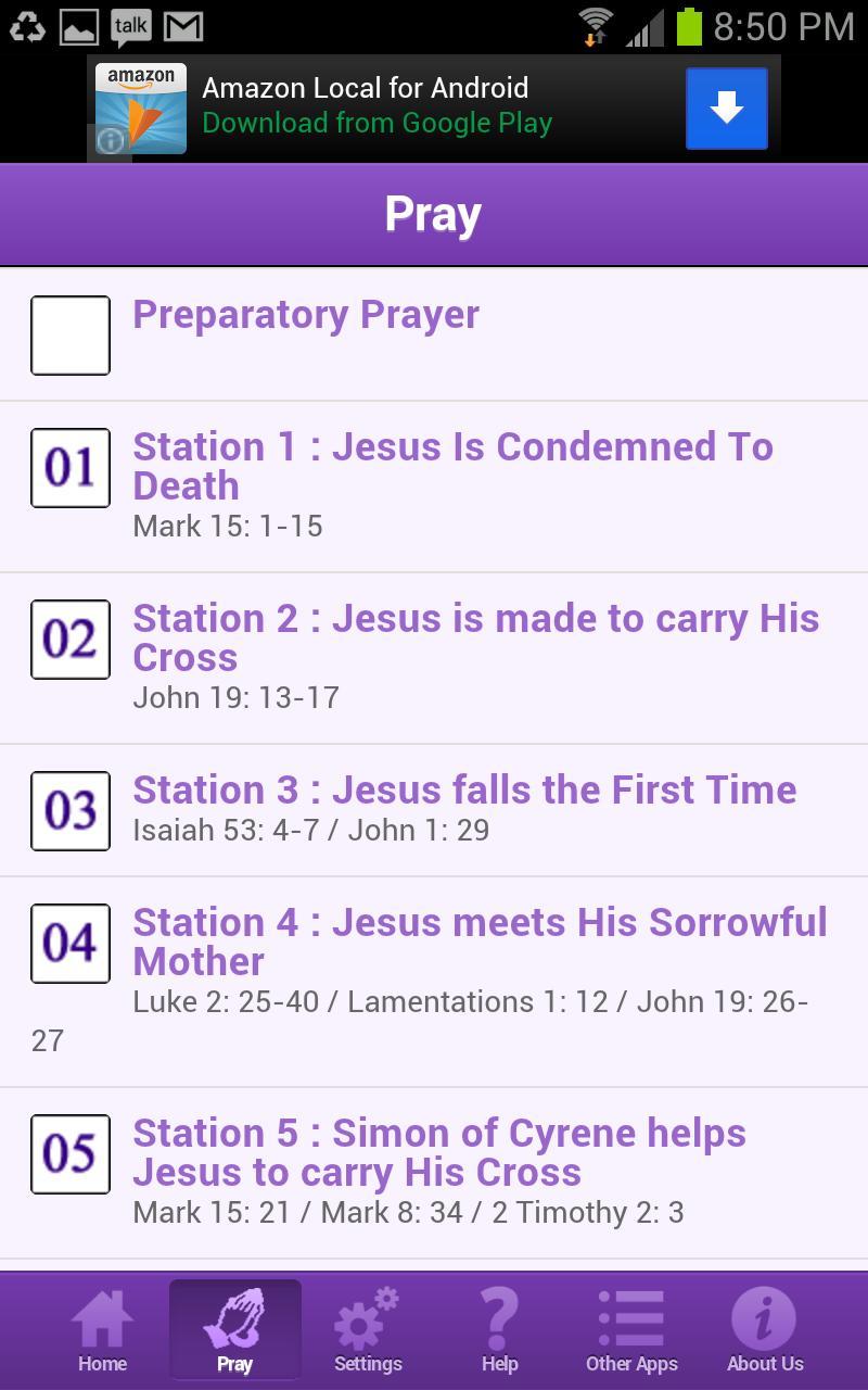 This Application consists of stations's image, Bible Reading, Prayers and Meditations. This will help you to know the Passion of Christ in this lend period.