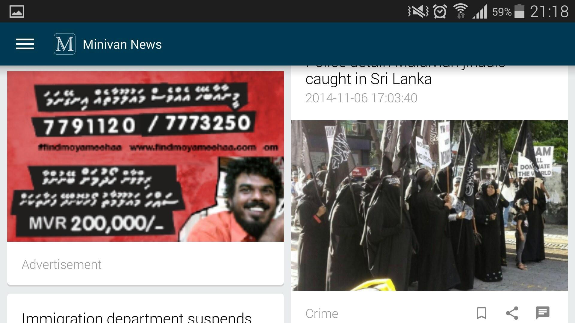 Minivan News (‘minivan’ means ‘independent’ in Dhivehi) is an English-language news website providing independent and unbiased coverage of the Maldives.
