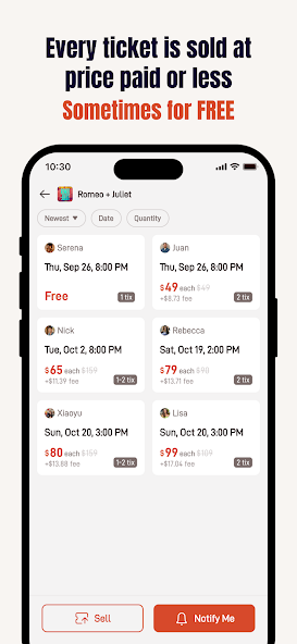 - Set Notify for your favorite shows to receive alerts when tickets pop up within your price range