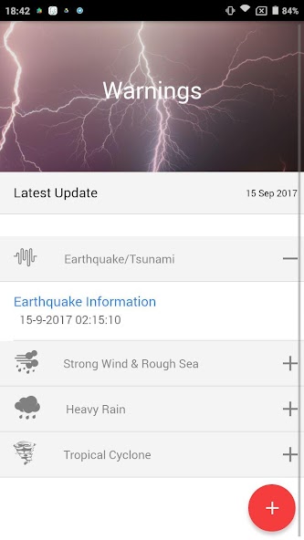• Notifications on warning updates for strong wind and rough sea, heavy rain, thunderstorm, tropical cyclone and tsunami;
