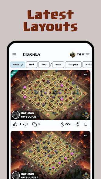 Unlike other apps, ClashLy is truly community-driven, letting every players to contribute and share their base layouts. ClashLy have unique, anti 3 star, and competitive CoC base designs shared by thousands of active Clashers so you never settle for outdated bases.