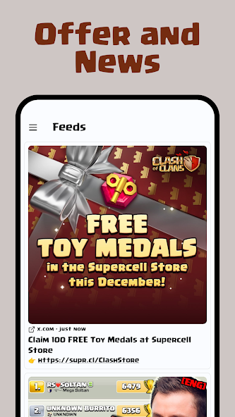 5. Feeds: Get latest attack strategy, offers and free rewards from Clash of Clans.