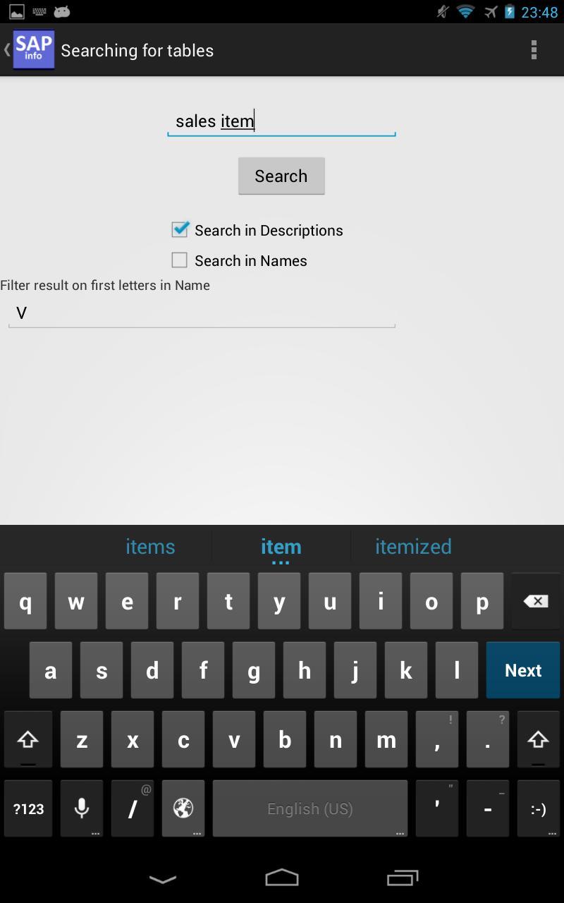 This application enables you to search through 72960 SAP Tables and 85887 SAP Transactions.