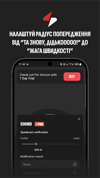 ⁃ Early and convenient notifications that the radar is nearby