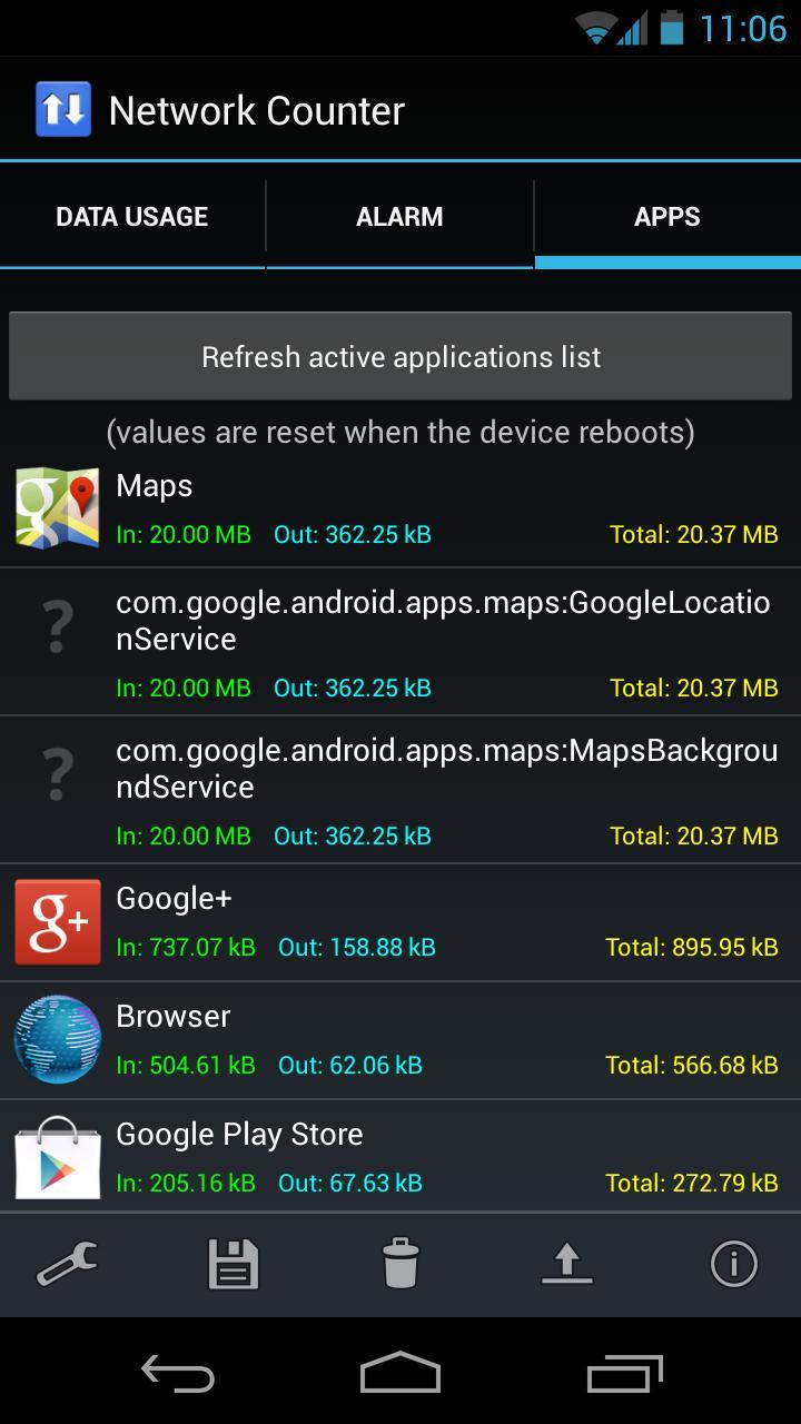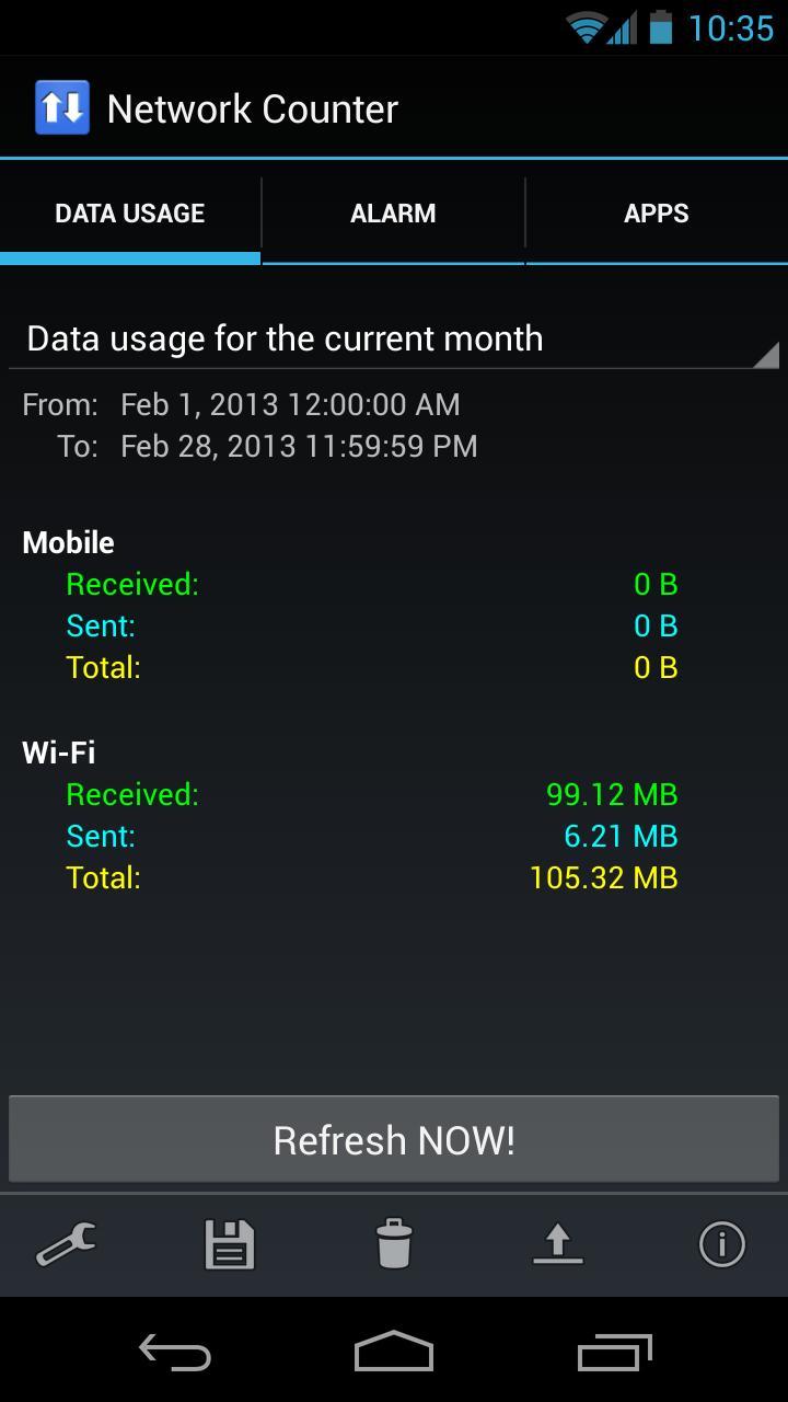 Network Counter requires Android 2.2 and higher, but Android 4.x is highly recommended. All the screenshots are taken from Android 4.2 device.