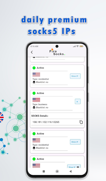 Stay connected with premium SOCKS5 proxies from around the world with Fire Socks! Our app provides reliable, fast, and regularly updated SOCKS proxies, allowing users to enjoy secure and unrestricted access to the internet, no matter where they are.