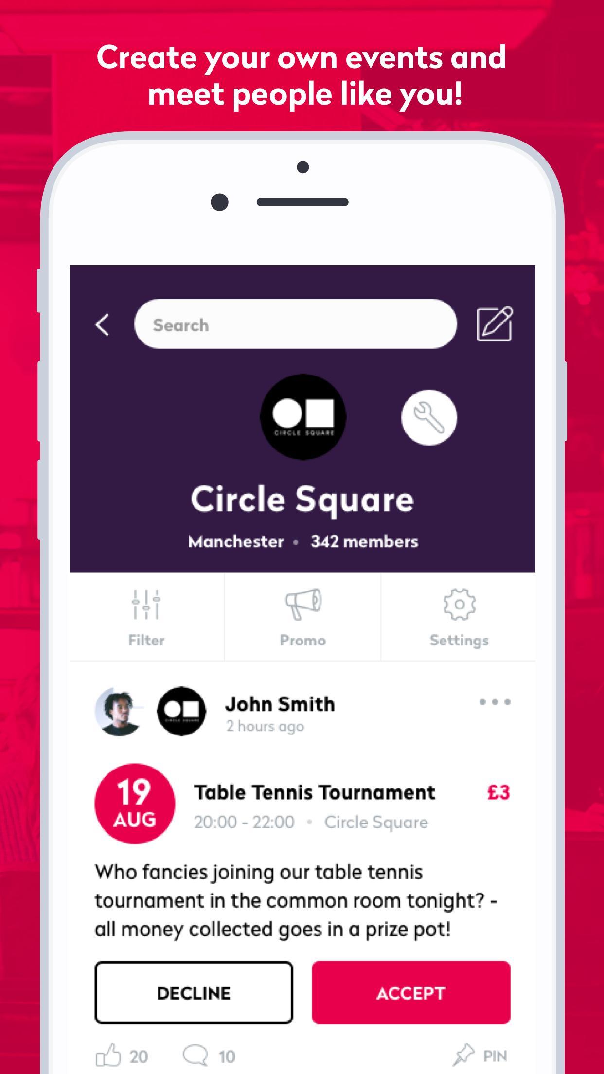 You went to university to meet interesting new people, do exciting things and make memories. So challenge your friends to a Games Night, Ping Pong, Table Football or Mahjong or confirm your attendance at our weekly events, brilliant parties, and inspirational talks from leading speakers.
