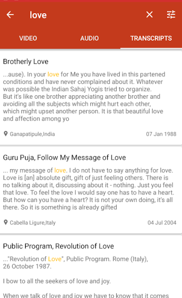 If you are a practitioner of Sahaja Yoga, you will enjoy this app to get access for free to all available Shri Mataji's talks in various formats (video, audio, and soon transcripts) from the Nirmalavidya.org database.