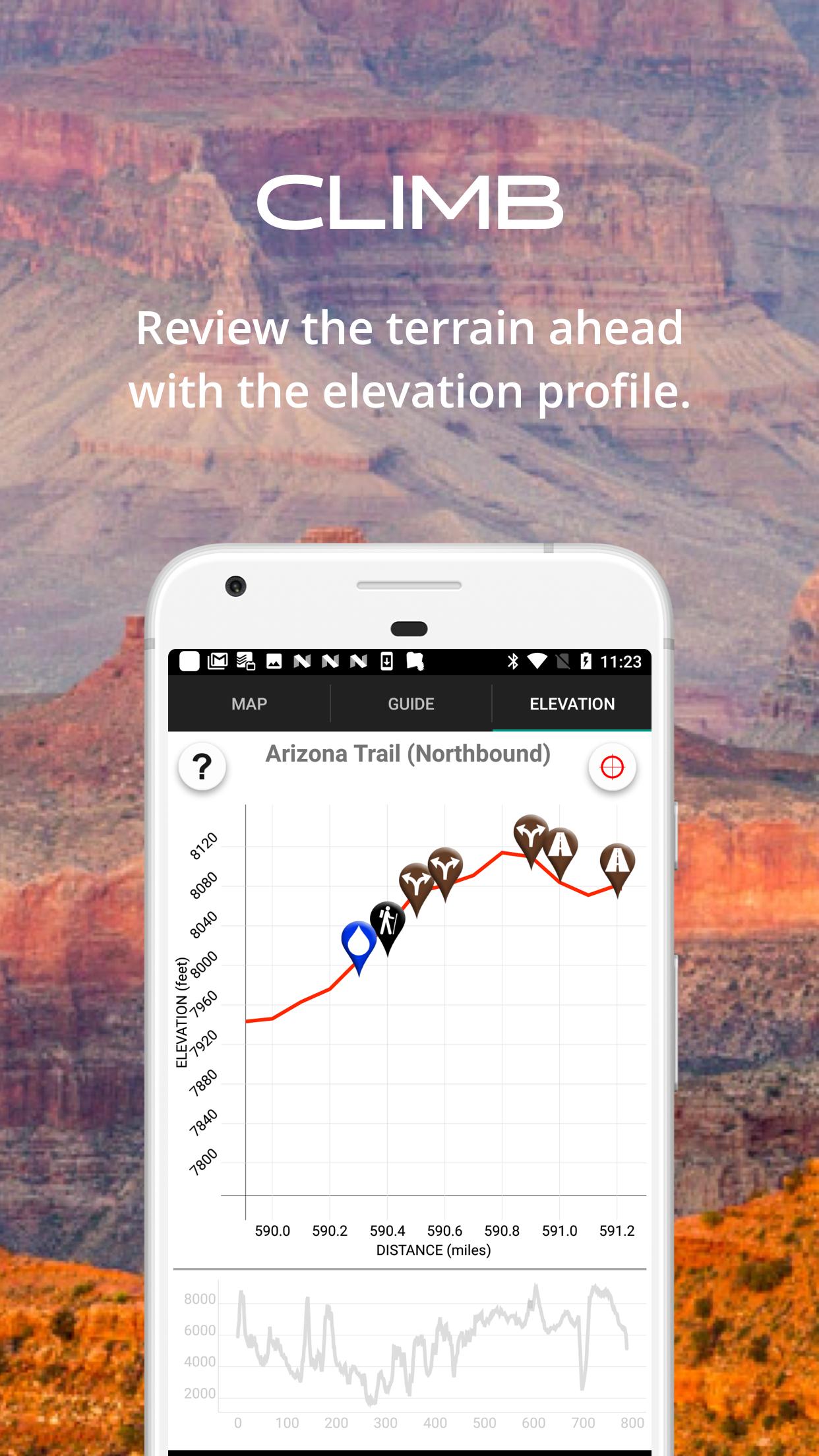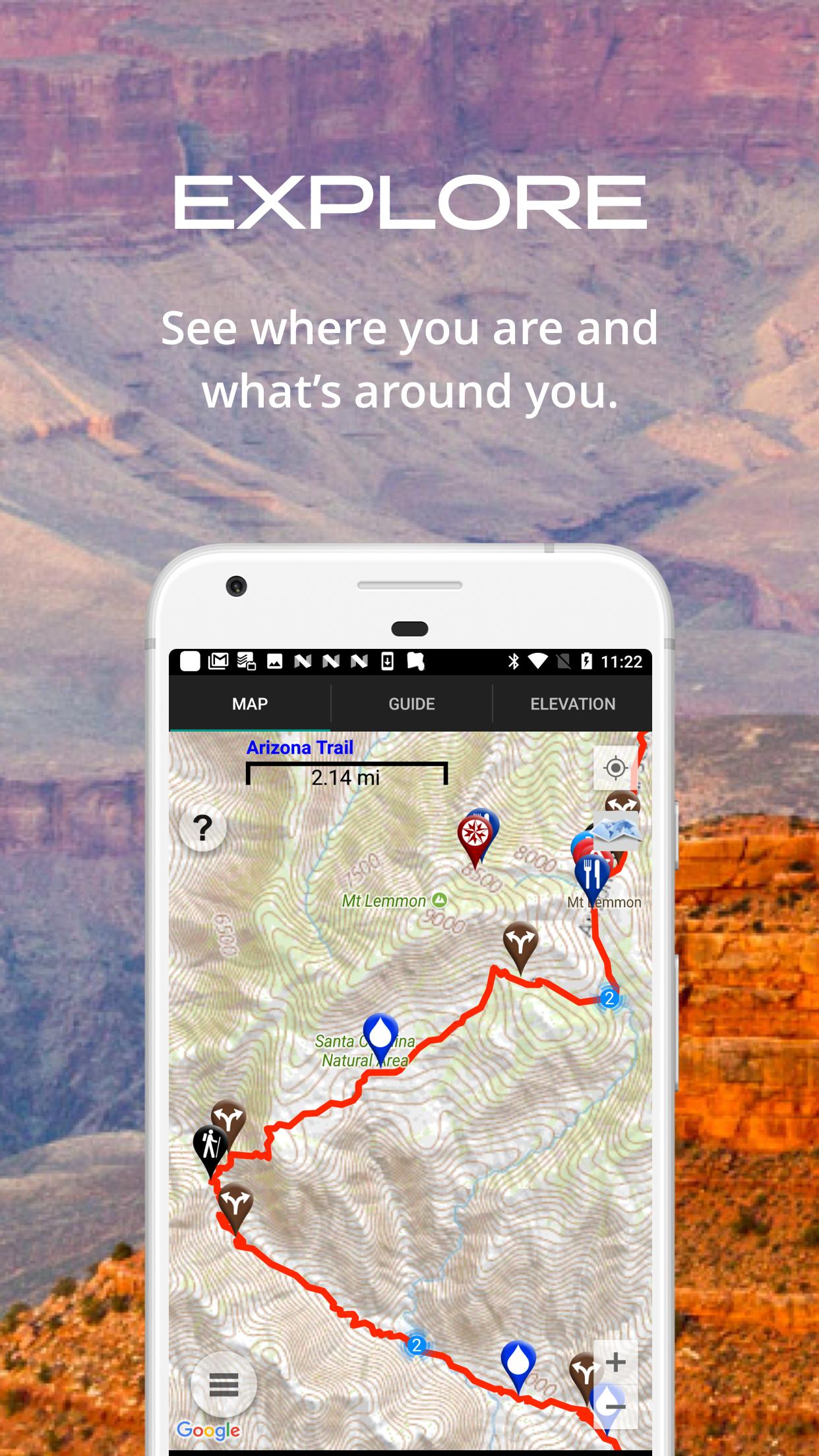 Arizona Trail is the official navigation app for the Arizona National Scenic Trail, built through a collaboration of the Arizona Trail Association and the creators of Guthook's Guides hiking guide apps.