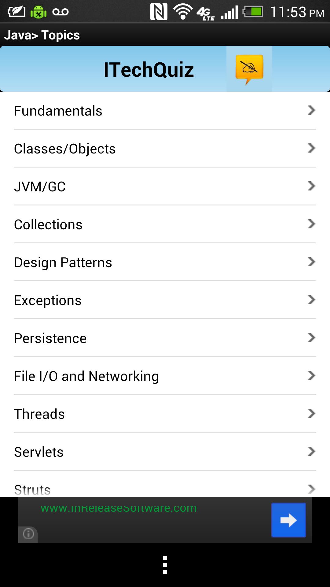 ITechQuiz is the most consolidated set of IT interview question and answers ranging from Java, J2EE, Servlets, JMS, Struts, UNIX, SQL, Spring, Hibernate, .NET, C# , WCF, WPF, ADO.NET/LINQ, ASP.NET, JavaScript, AJAX, jQuery, XML, Webservices(SOAP/REST). It is a must have on-the-go app for the IT crowd. One app for all your interview needs. Over 600+ questions/answers organized by topic. Ability to fetch latest questions from time to time. Share your own interview questions by posting them and receive notifications when new questions are added. More topics to be added soon.Share your own interview questions by posting them and receive notifications when new questions are added.