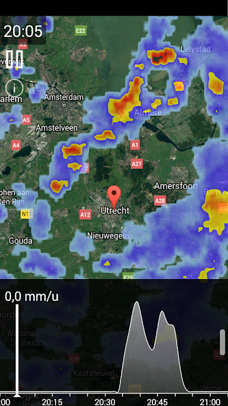 - Smooth rain cloud animations allow you to see down to the minute what the situation was and is going to be.