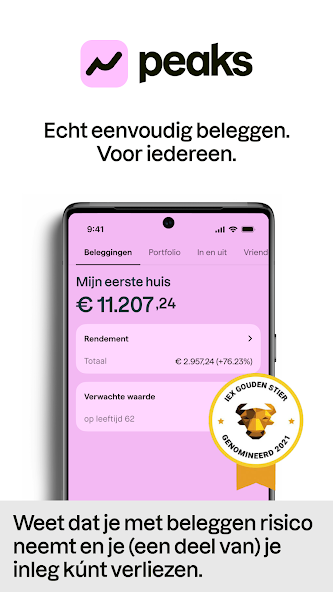 • Peaks app: The Start package is €1,99 per month. For the more extensive packages Complete and Premium you pay €2,99 or €4,99 per month. Moreover, you pay a variable fee between 0,25% to 0.5% of the total value of your investments per year.