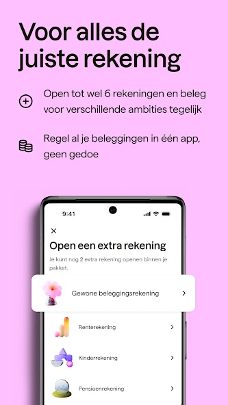 We do not want you to take unnecessary risk. That’s why it is important to only invest money you can afford. After all, the value of your investments always fluctuates. Picture this: you need money right away, but the value of your investments is going down. Then you risk losing a chunk of your deposit(s) because you are selling your investments at a loss. An investment account should be an addition to your usual savings.