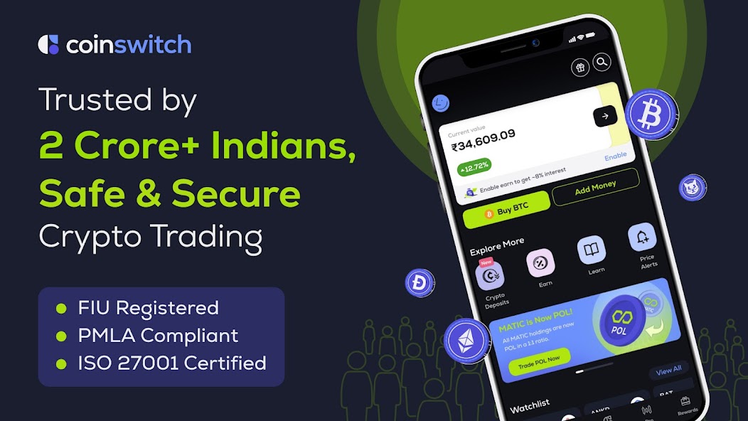 The CoinSwitch, a crypto bitcoin trading app, is Trusted by 2 crore+ users to buy & sell Cryptocurrency Online.