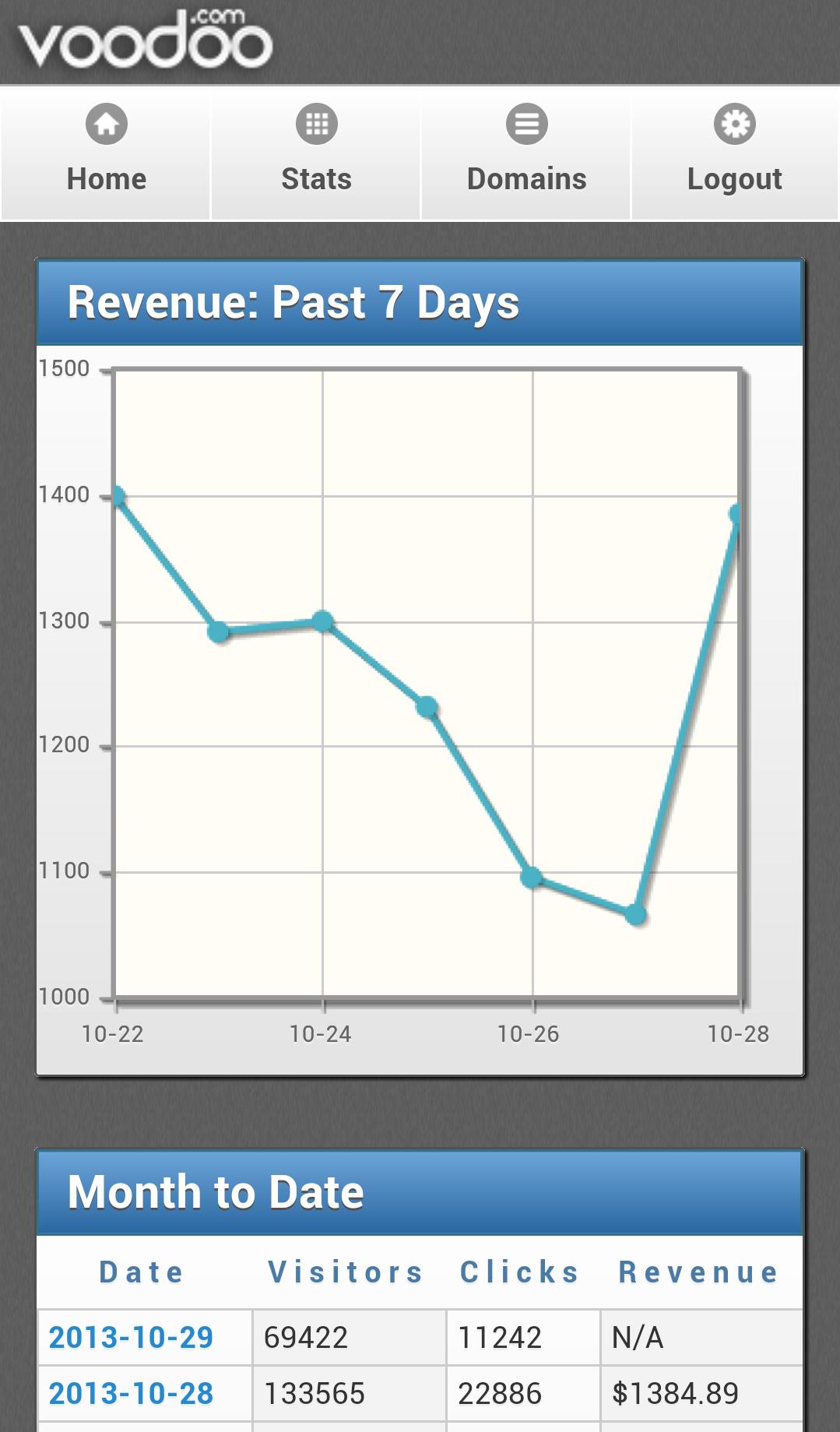 This platform allows you to manage your Domain portfolio via phone or tablet. Most features provided in our web interface are available in this app including Real Time Stats and Earnings.