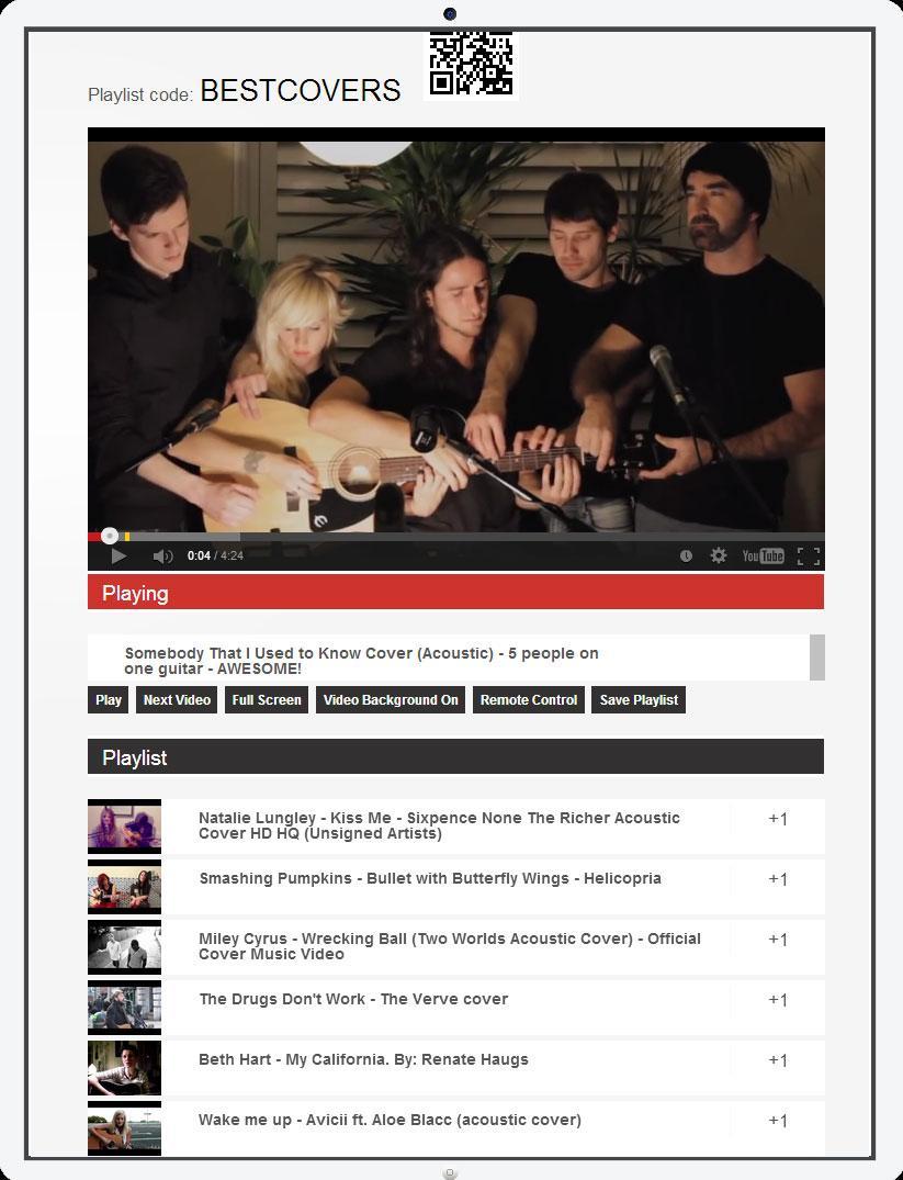 Play videos at your party on the same time as you and your friends easily can add and vote what video is going to be played next!