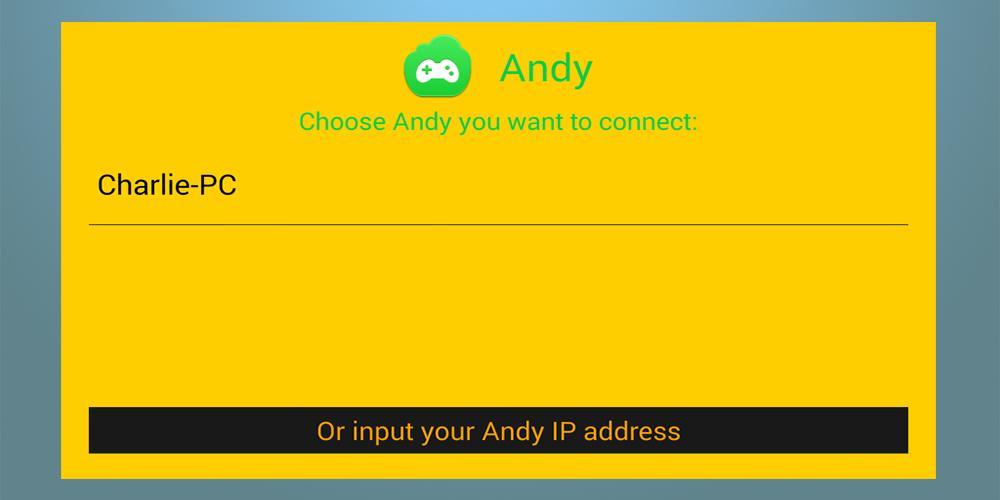 The Andy Remote Control app allows your phone or tablet to take control of the industry-leading "Andy", android PC emulator, over your WIFI network. Sit back and relax as you control Andy on your laptop or big screen display. Tilt, rotate and all swipes and taps are relayed to Andy at incredible speeds for a smooth gaming experience. If you'd like to try Andy OS, please visit www.andyroid.net ..
