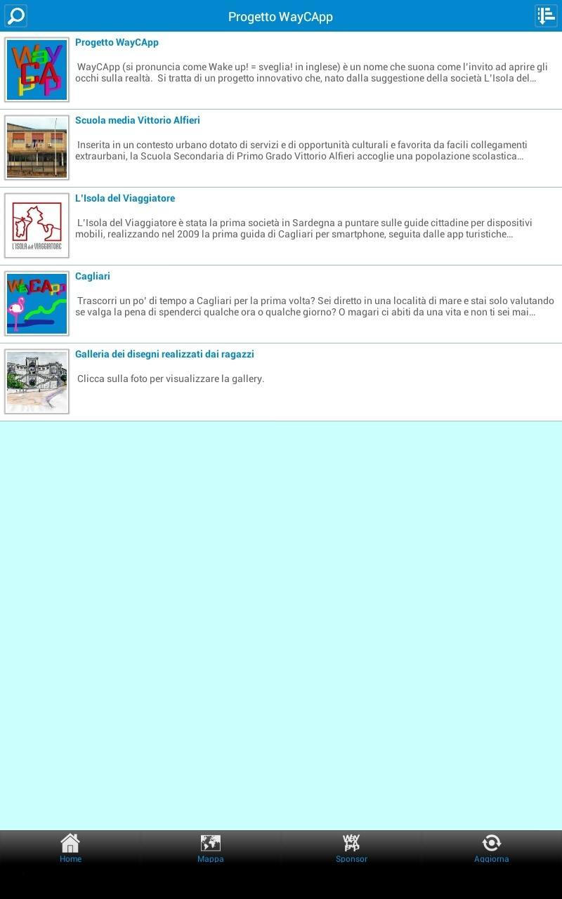 WayCApp Cagliari is an app dedicated to the city, created with content created by the students of the Vittorio Alfieri Middle School of Cagliari, under the guidance of teachers and with the support and coordination of the company The island of the traveler. The project allows children to approach the history, culture and traditions of their city in a new and original way, and provides users with a nice and easy -to -use support written by children for children.