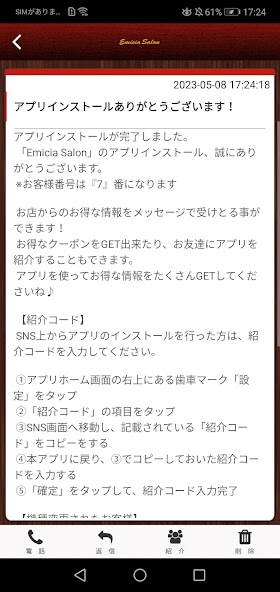 In this app, you can receive the latest information of Emicia Salon and use useful functions.