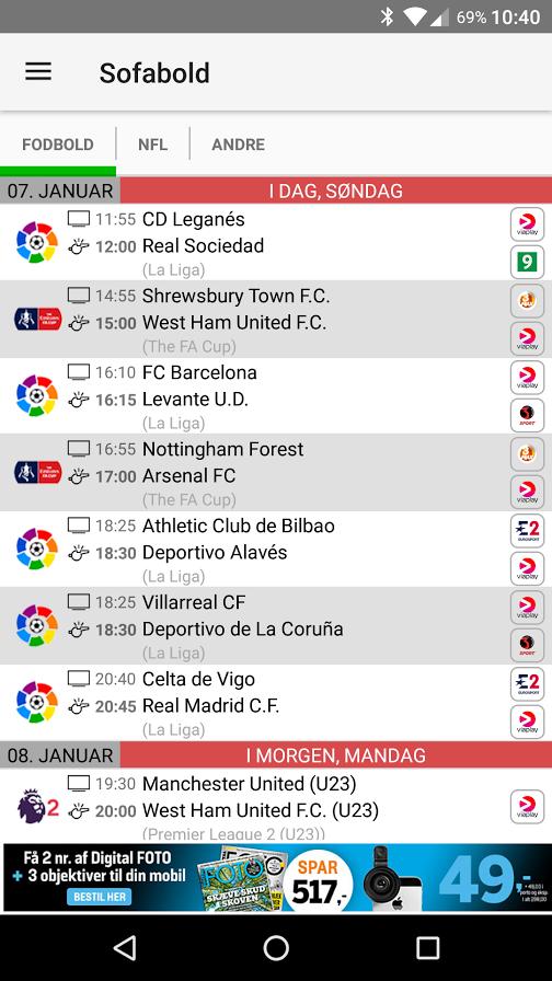 Sofabold.dk is your TV guide to LIVE football, handball and NFL games on your TV