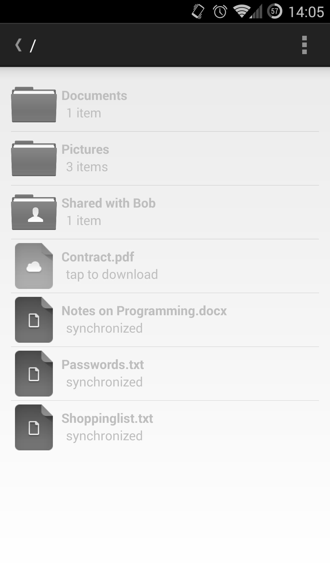 • Access and download synchronized files from the network