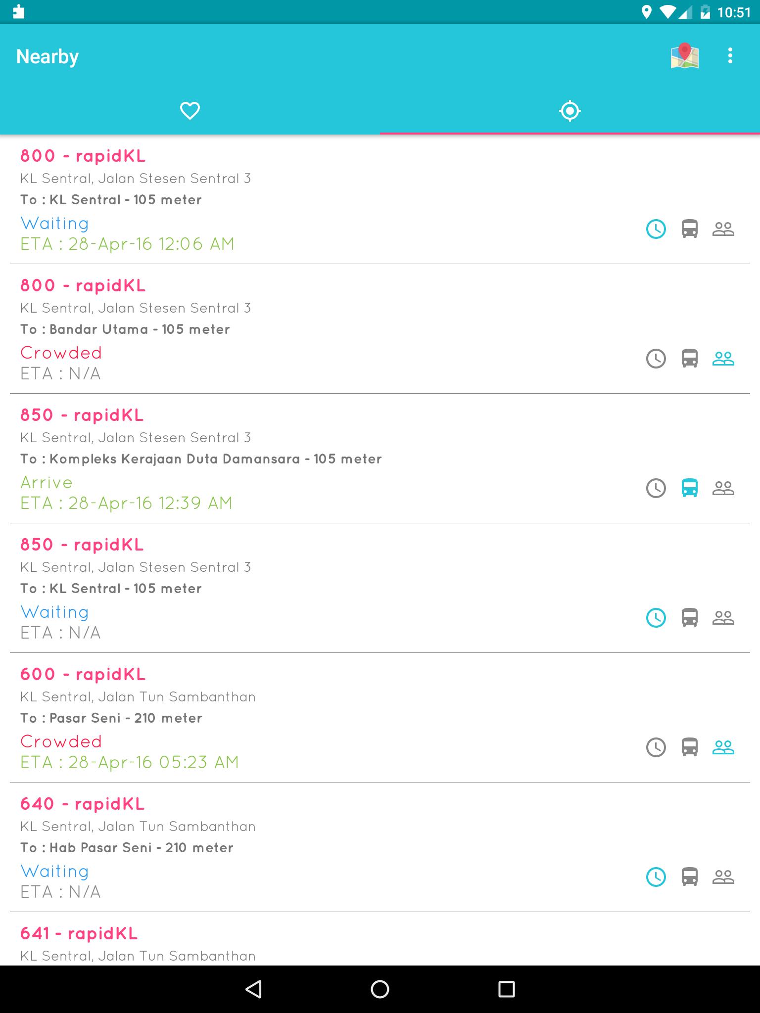 2) NEARBY: search nearest public transport station and view the current situation.