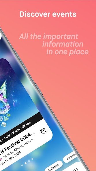 Get in touch with other visitors using the meet-up function or take a look at the Favorites-screen to see to which events your friends are going to. But there is more; take part in the win-games to win tickets, meet and greets and coins for the greatest festivals.