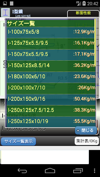 Go to the weight calculation screen by tapping the part that displays the unit weight, and automatically calculate the total weight by entering the quantity and size. I also can also create a spreadsheet.