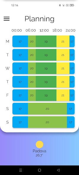 - Create and organise a weekly calendar in order to set the temperature day-by-day
