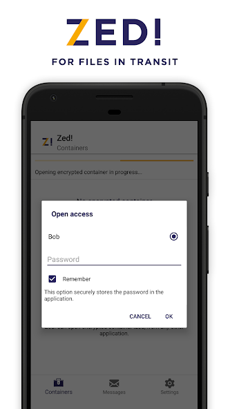The .zed containers generated with a password, personal keys (.zaf), or PFX/P12 key files can easily be automatically decrypted on your mobile.