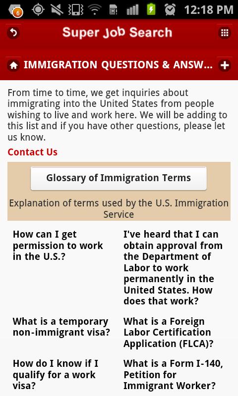 • Immigration Q&A plus Glossary of Immigration Terms used by the US Immigration Service for foreign workers interested in an internship or job in the USA